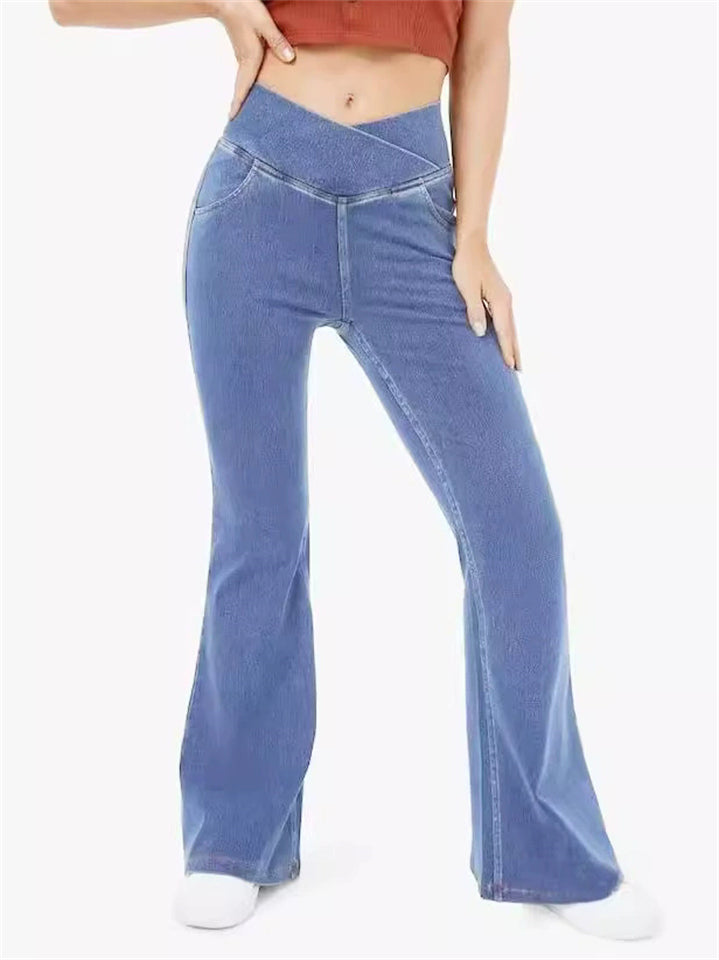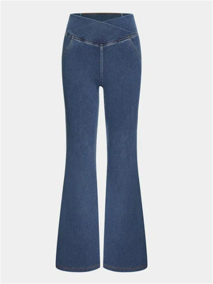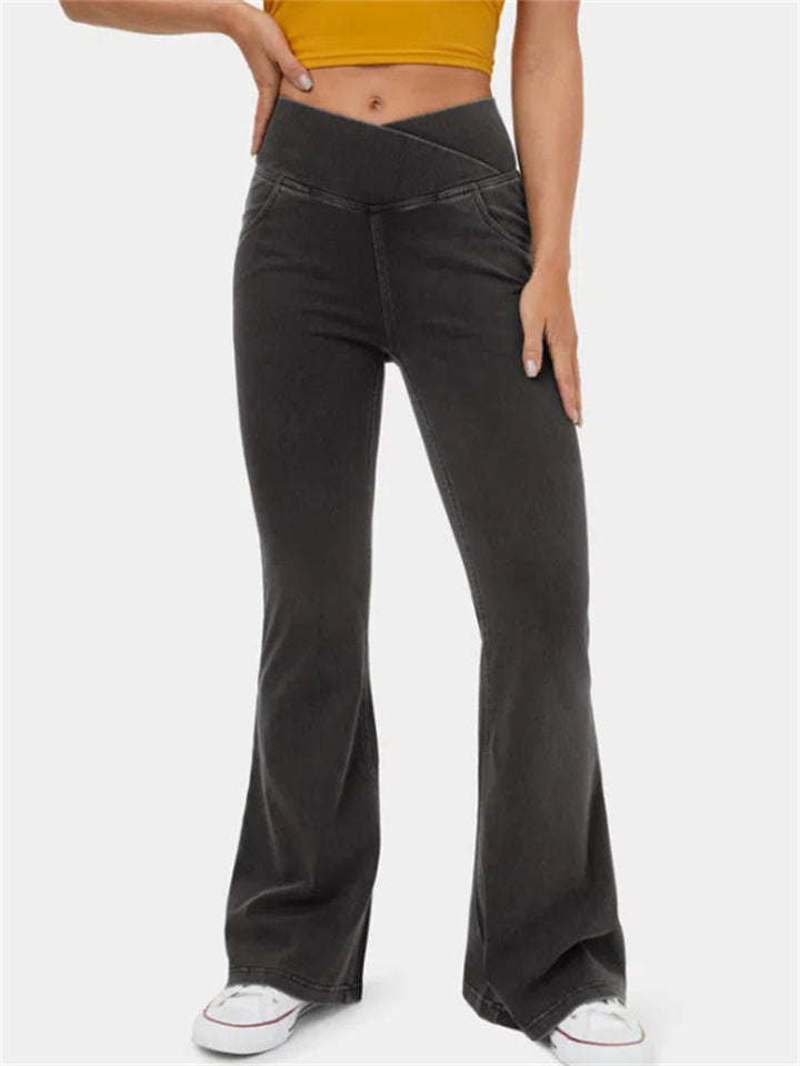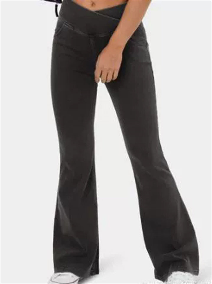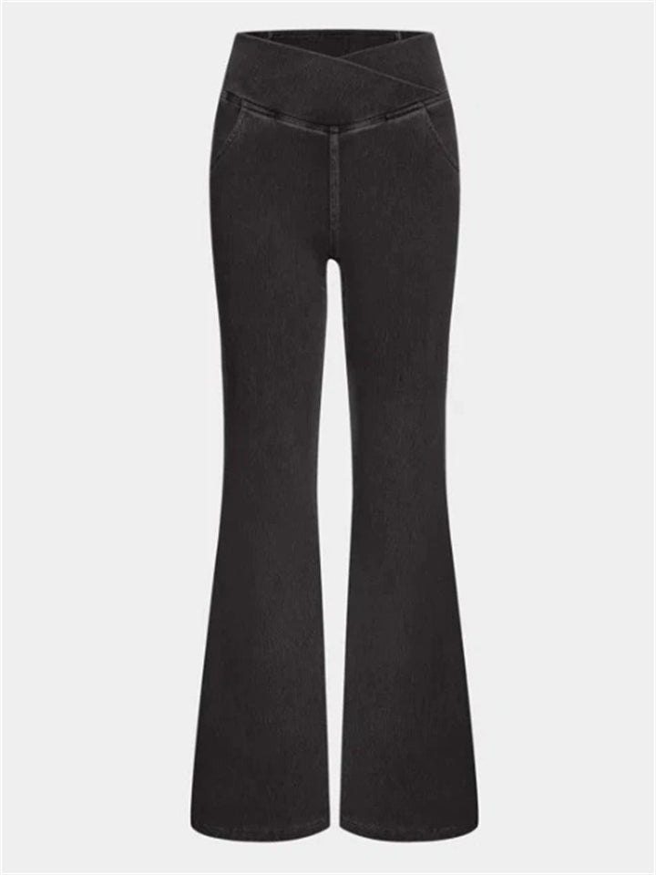 Women's Solid Color Fitted High Stretch Flared Pants