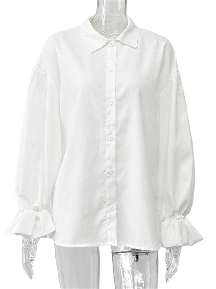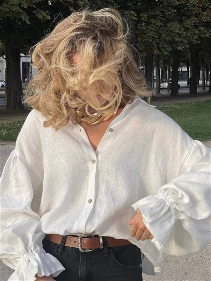 Women's French Style Simple White Lantern Sleeve Blouses