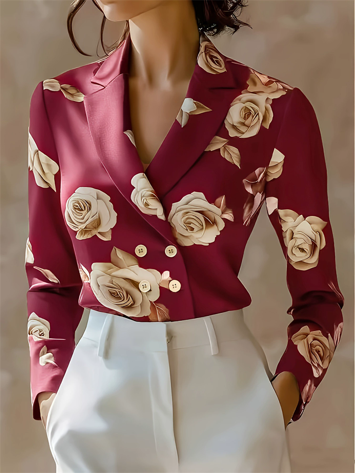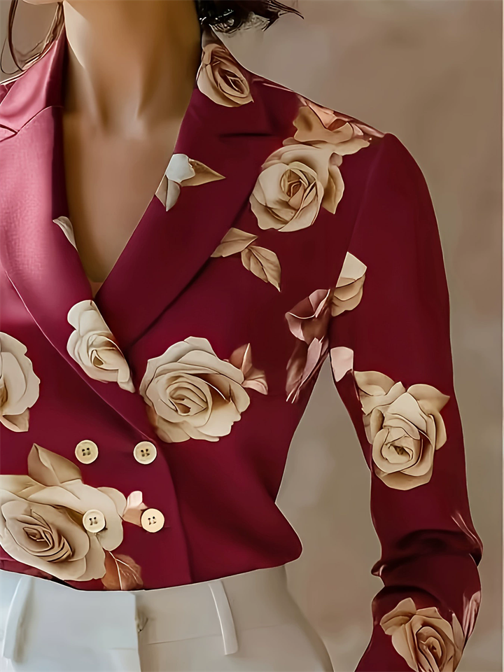 Women's V-Neck French Style Double Breasted Floral Print Lapel Blouses – ModaSharp