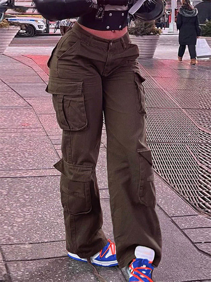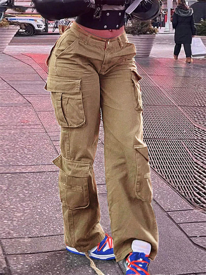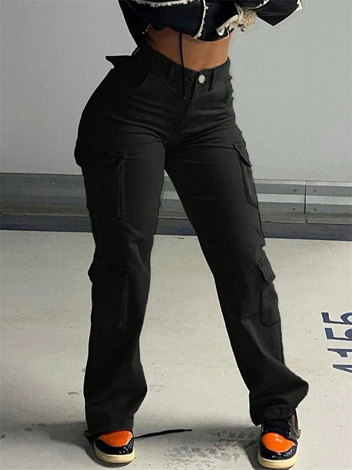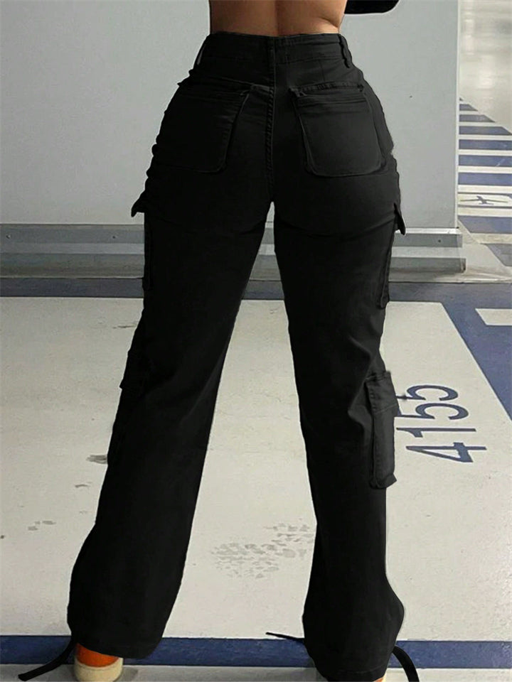 Women's High-Waist Cargo Pants with Multi-Pockets