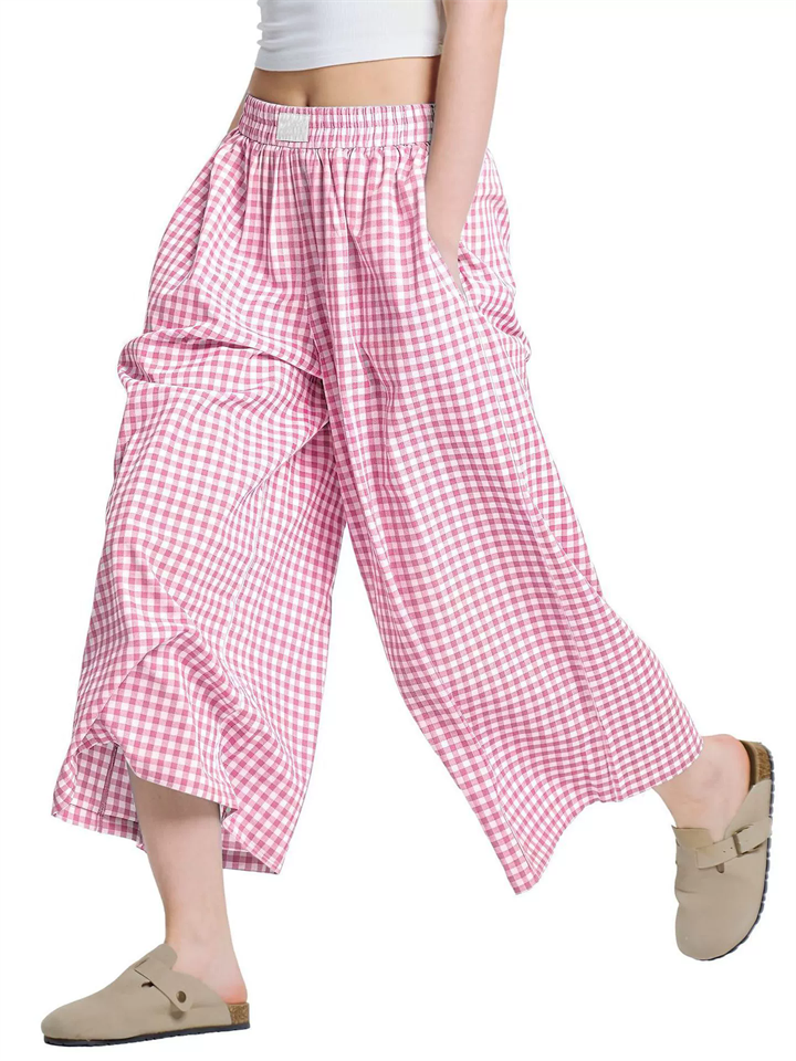 Women's Plaids Wide Leg Capri Pants Summer Casual Loose Fit