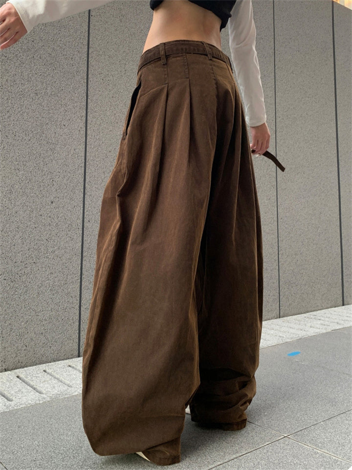 Women's Simple High-Waist Pleated Baggy Casual Pants with Belt
