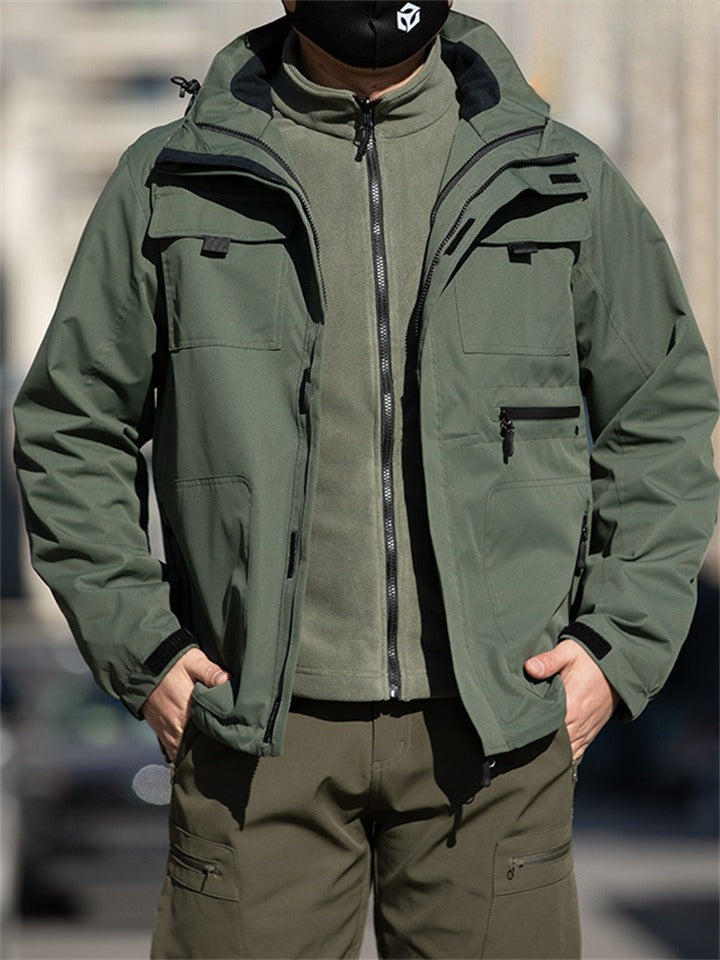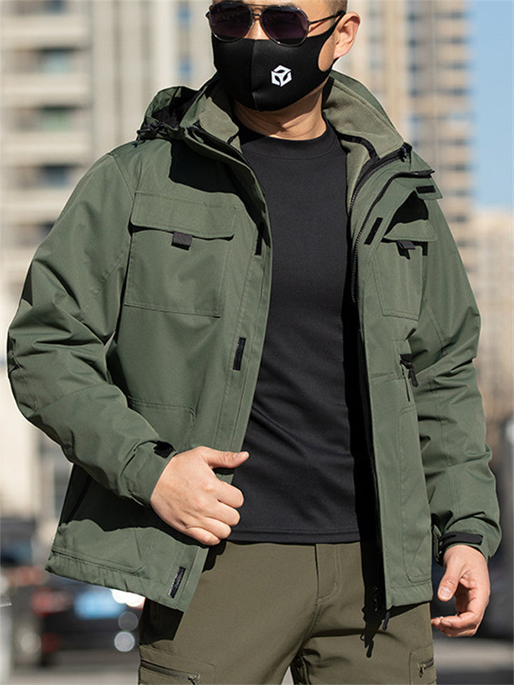 Men's Autumn 2-in-1 Sporty Pockets Hooded Outdoor Jackets with Lining