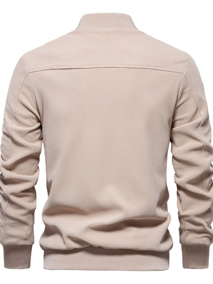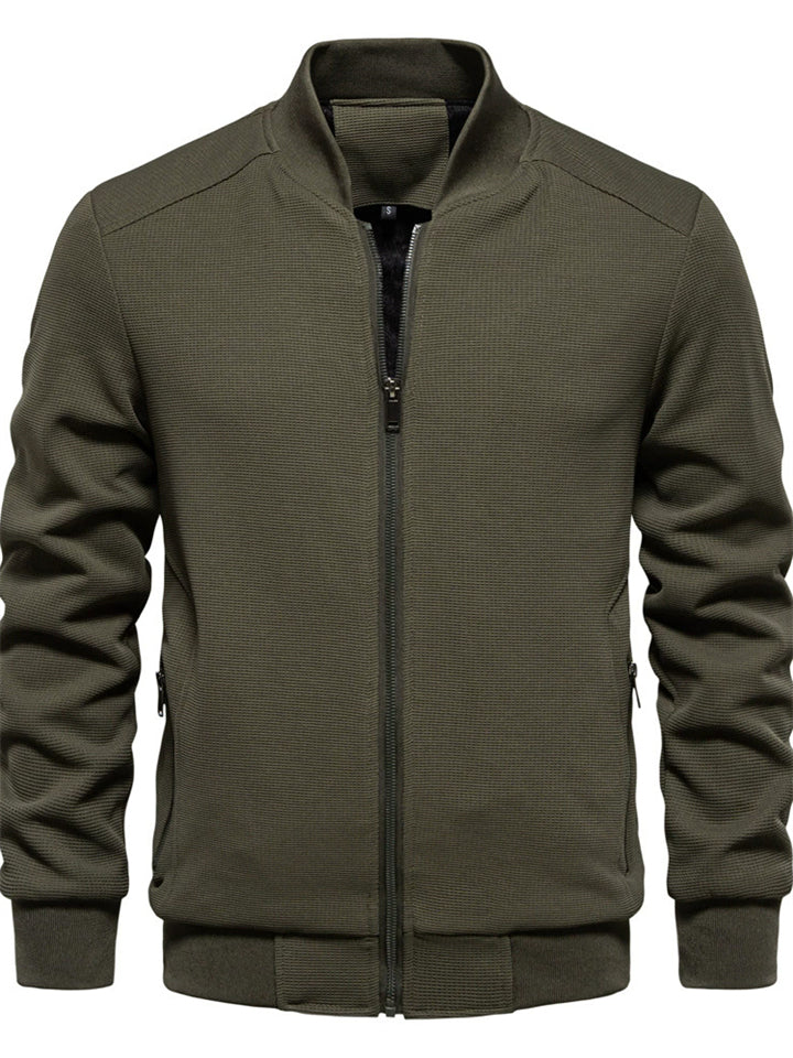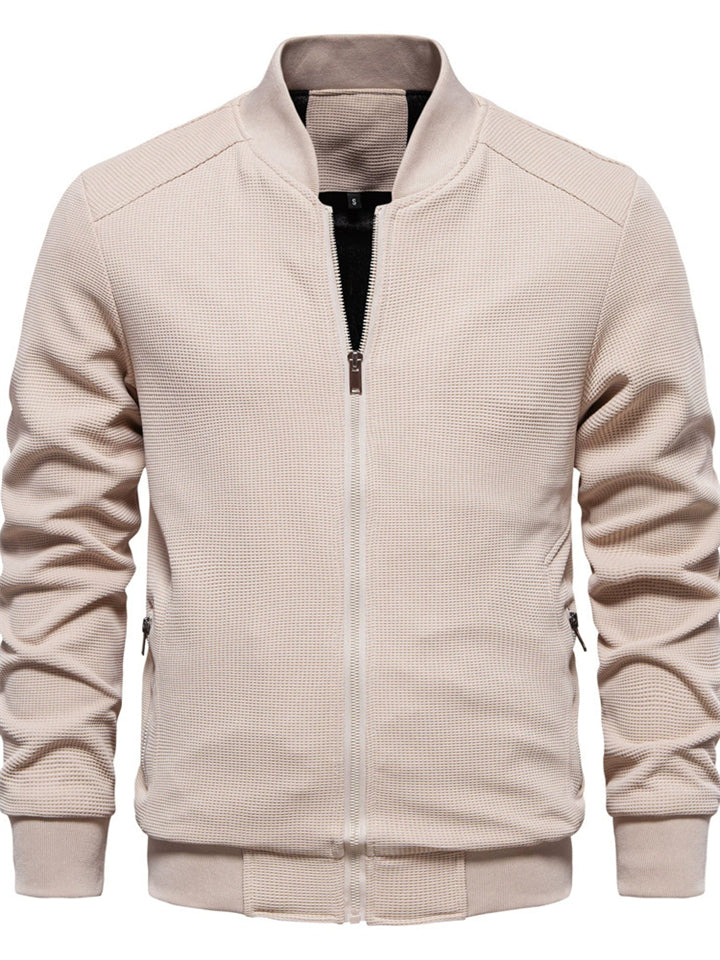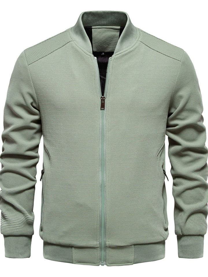 Men's Autumn Stand Collar Solid Color Waffle Zip Up Jackets