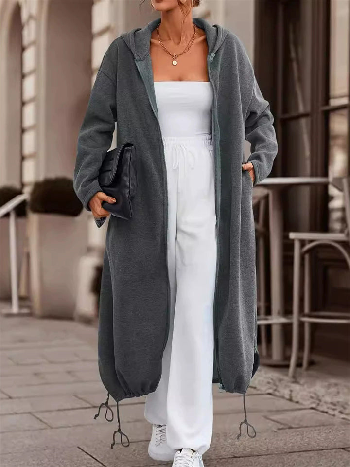 Women's Casual Zip Up Hooded Long Jacket for Autumn