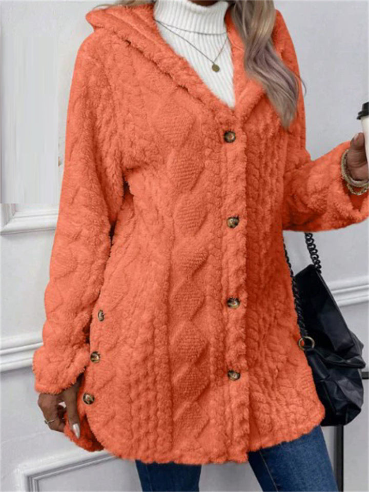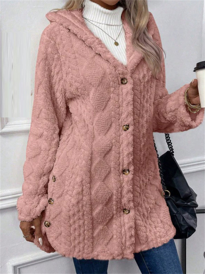 Women's Button Up Warm Fleece Hooded Jacket