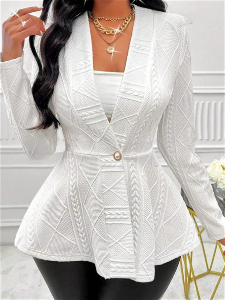 Autumn Women's Slim Fit Blazer with Cable Knit Pattern OneButton Closure