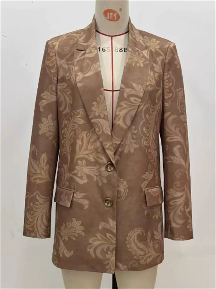 Women's Autumn Plants Printed Single Breasted Suit Collar Coats