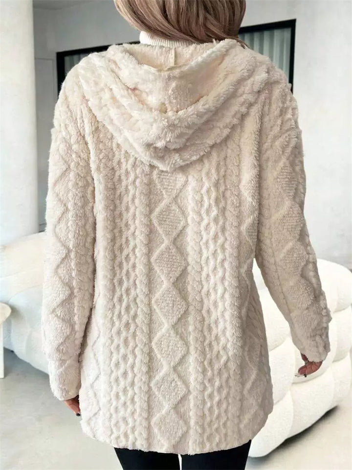 Women's Autumn Solid Color Diamond-shaped Pattern Hooded Cardigan Coat