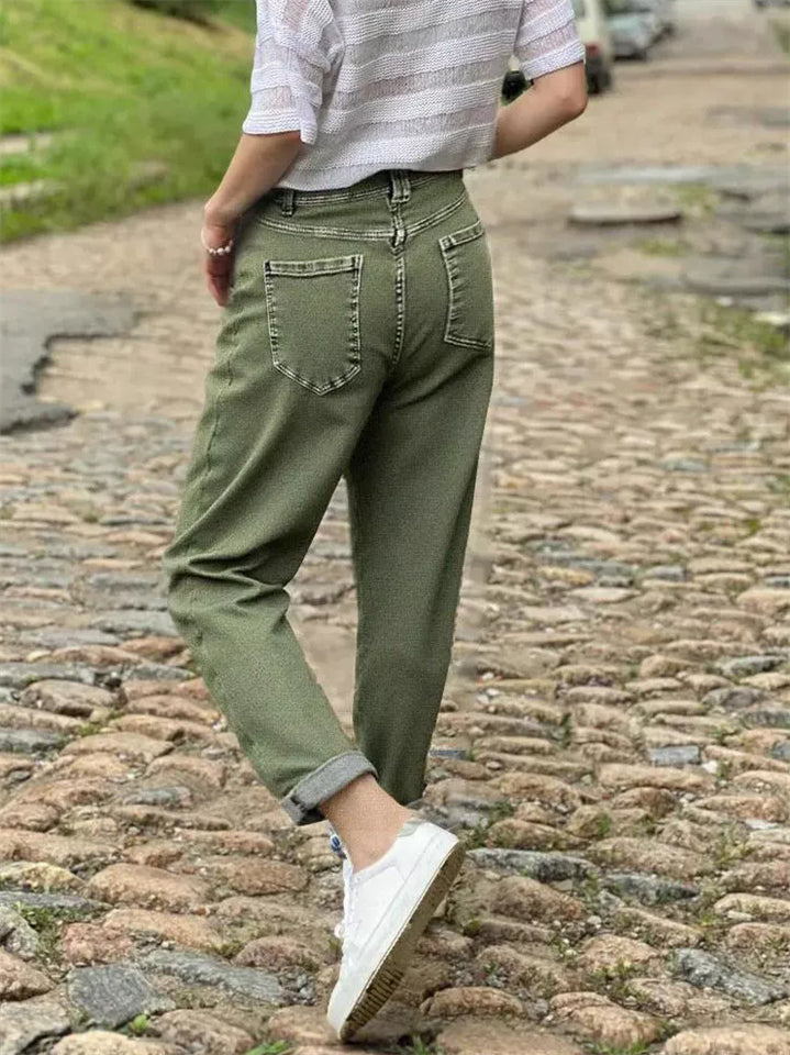 Women's Green Stylish Casual Mid Waist Loose Fit Utility Cargo Denim Pants