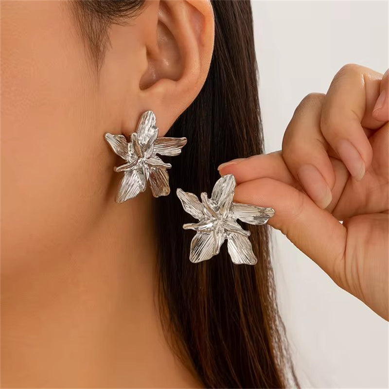 Blooming Flowers Vintage Piercing Earrings for Lady