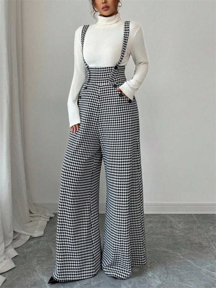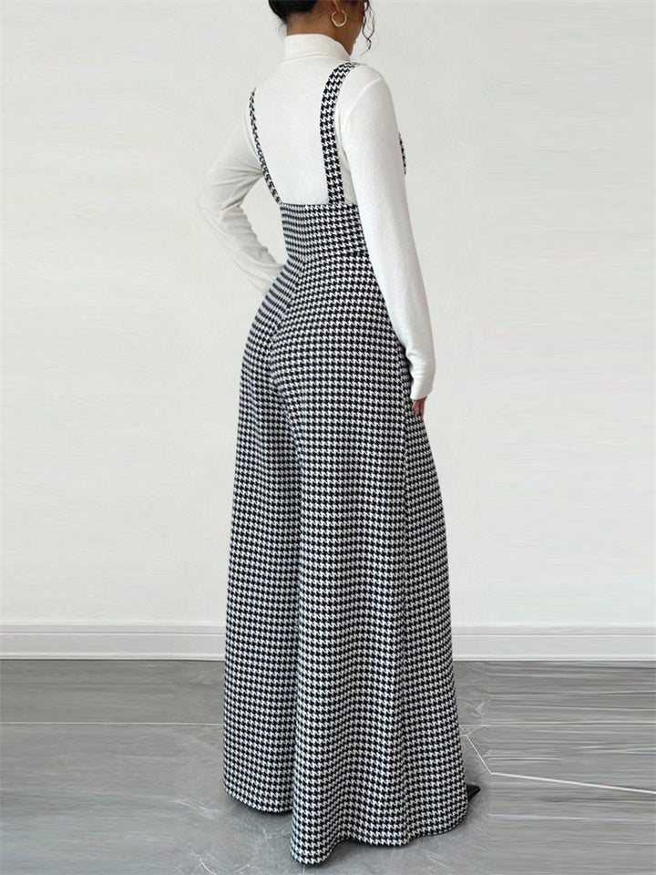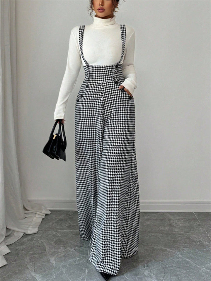 Women's Stylish Houndstooth Overall Jumpsuit High-Waist Loose Fit