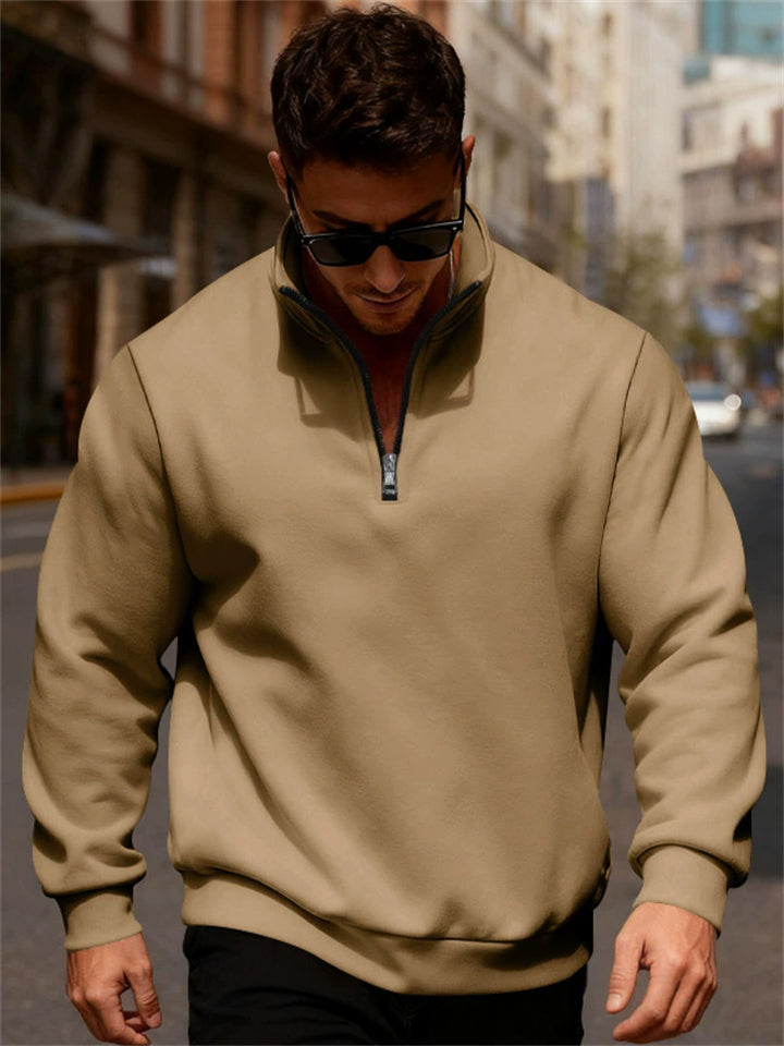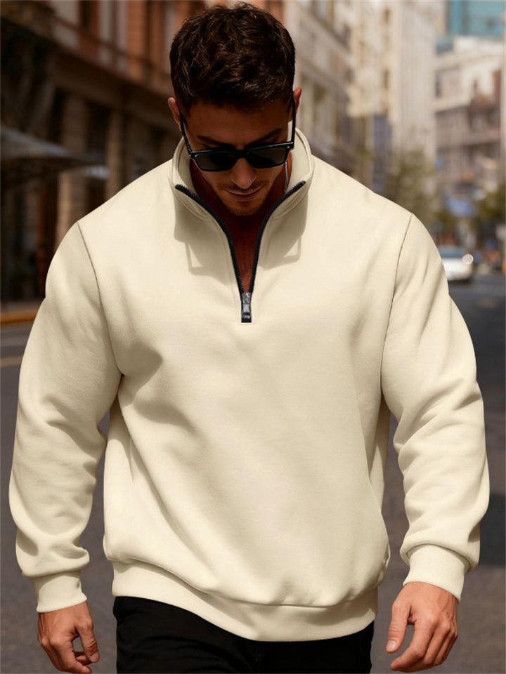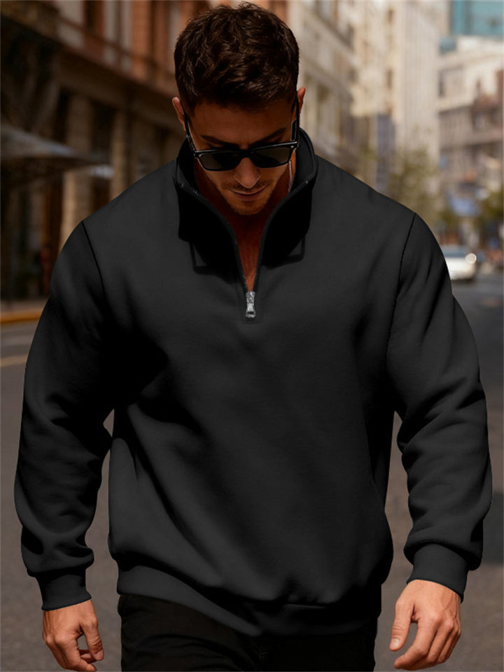 Men's Autumn Fleeced Solid Color Half Zipper Stand Collar Sweatshirts