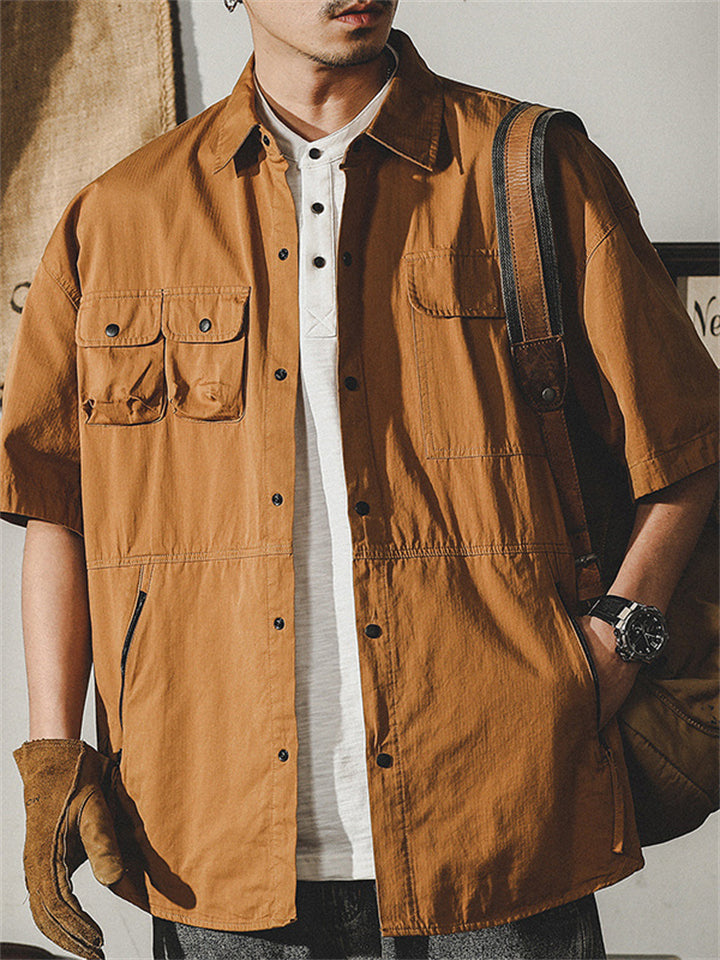 Men's Cool Multi Pockets Button Up Cargo Shirts