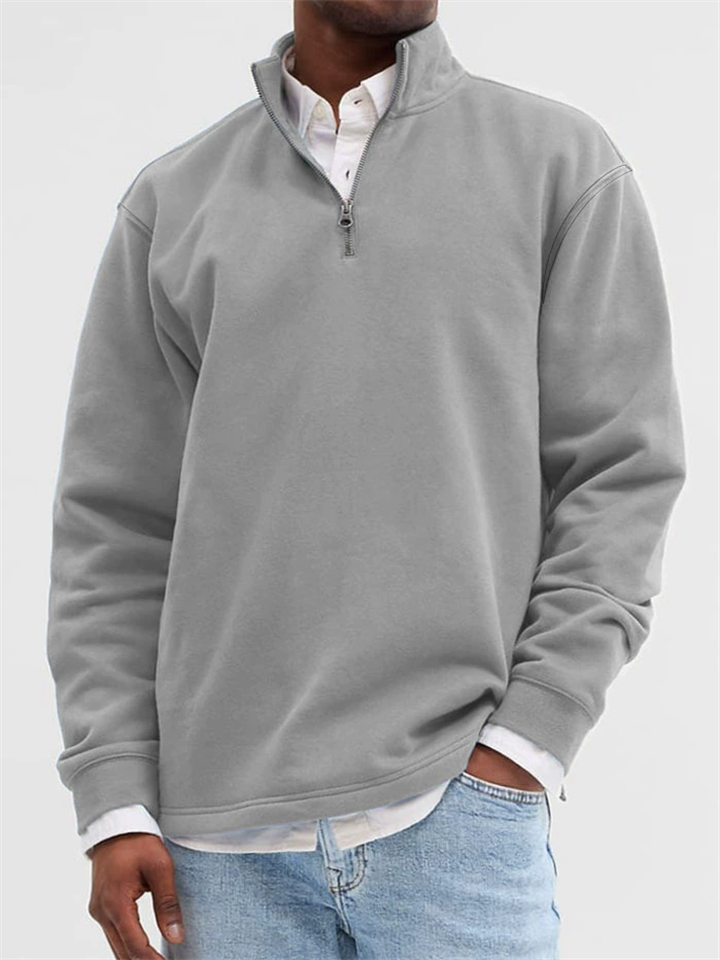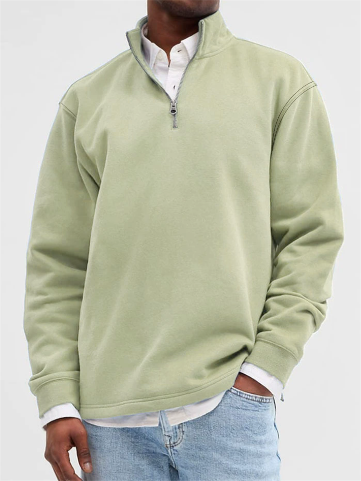 Men's Solid Color Stand Collar Zipper Long Sleeve Sweatshirts – ModaSharp