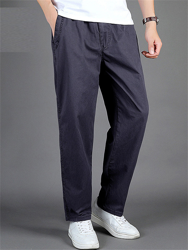 Simple Casual Slim Fit Casual Elastic Waist Cargo Trousers for Men