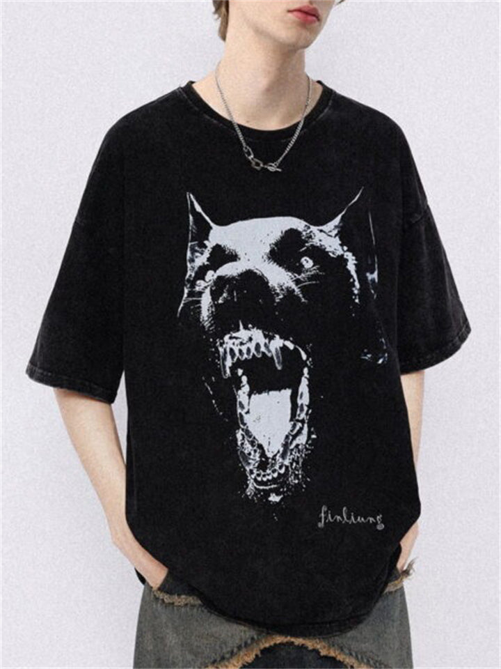 Super Cool Doberman Graphic Print Hip Hop Washed Shirts