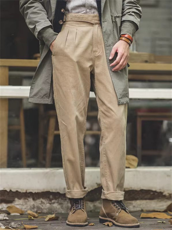 Men's British Style Adjustable Waist Straight-Leg Pants