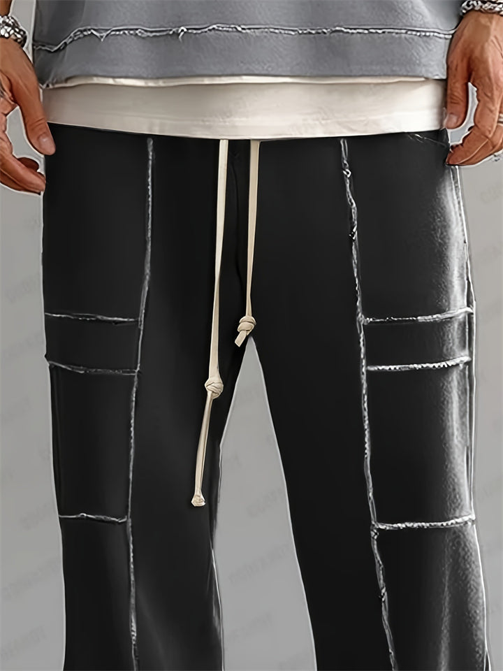 Men’s Casual Contrast Piping Loose Fit Drawstring Trousers