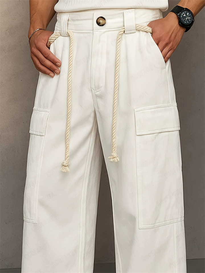Men’s Streetwear Loose Fit Stylish Drawstring Cargo Trousers with Pockets