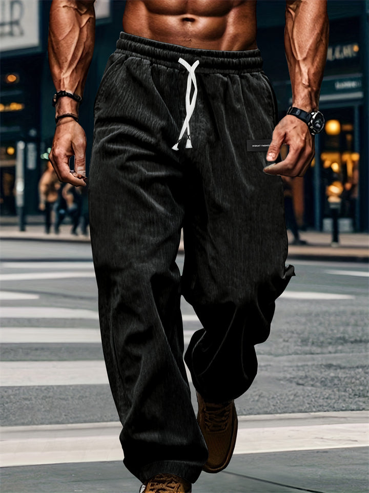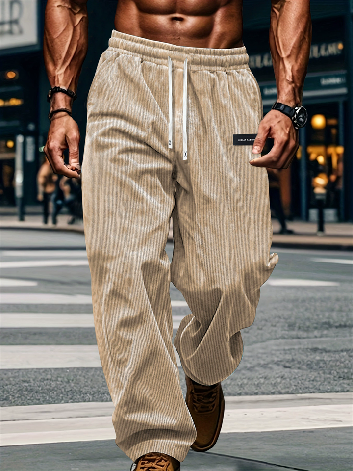 Men's Autumn Corduroy Loose Fit Mid Waist Drawstring Straight Leg Trousers