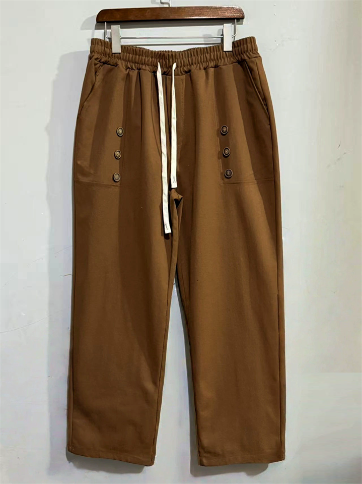 Men's Casual Drawstring Loose-Fit Cargo Trousers with Bottons Decor