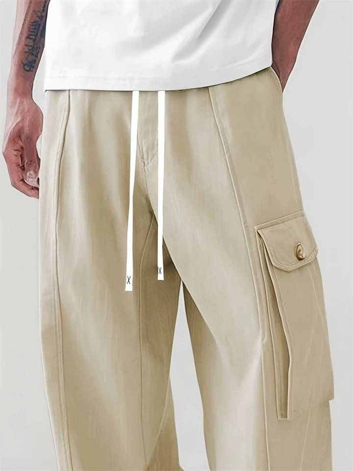 Men's Casual Loose Fit Cargo Pants with Side Flap Pockets