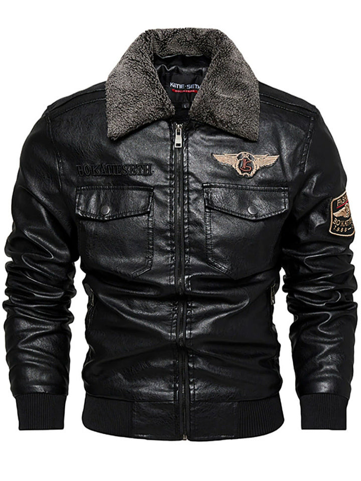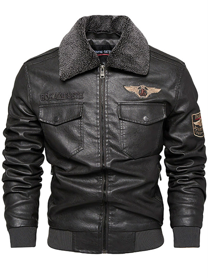 Men's Detachable Collar Faux Leather Biker Jacket Winter Motorcycle Riding Outerwear