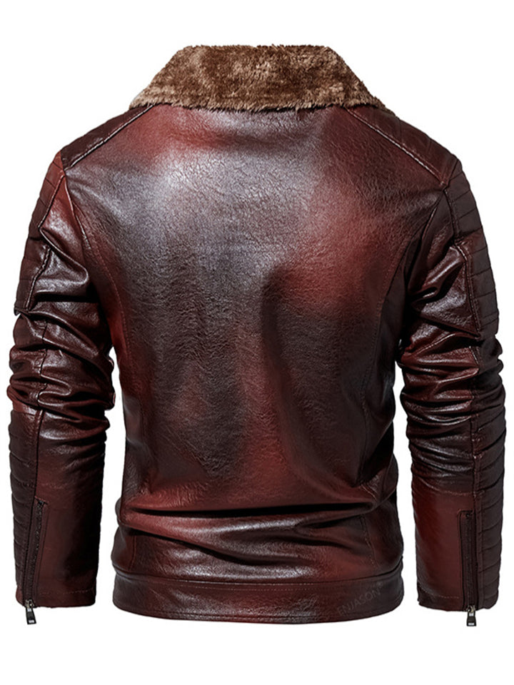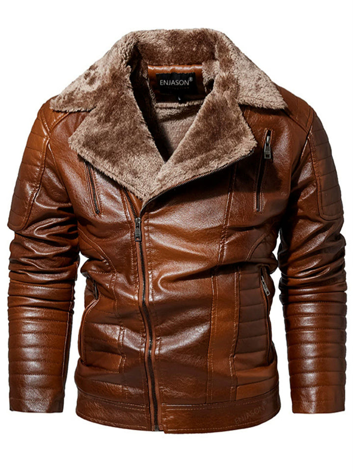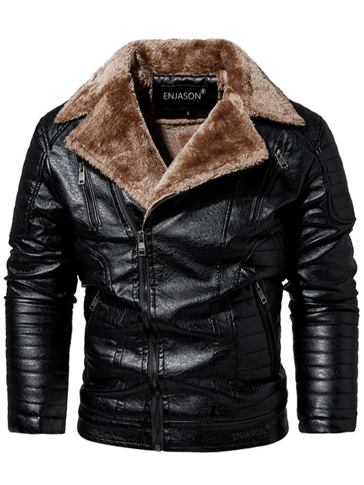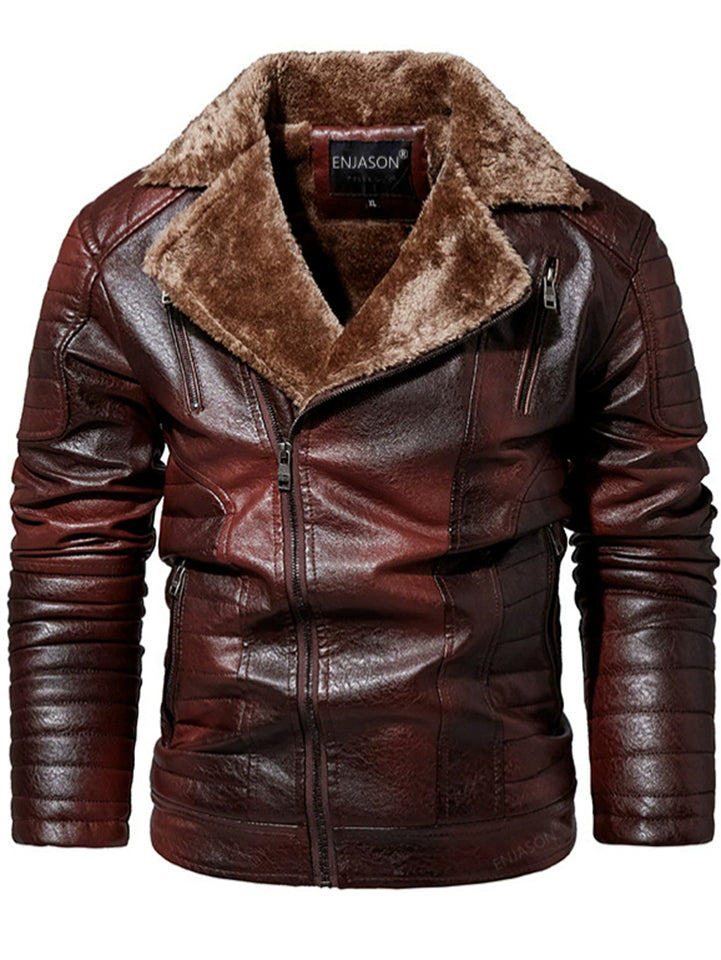 Men's Winter Fleece Lined Zipper Pockets Faux Leather Warm Casual Outerwear Coats