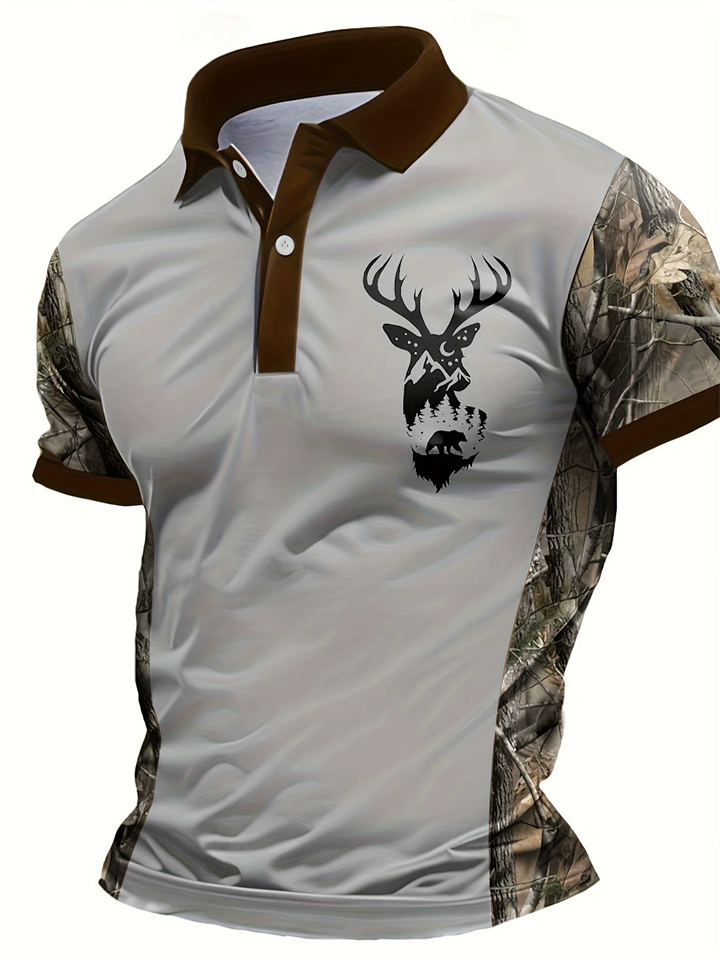 Men's Camo Deer Print Polo Shirt Summer Casual Fashion Outdoor