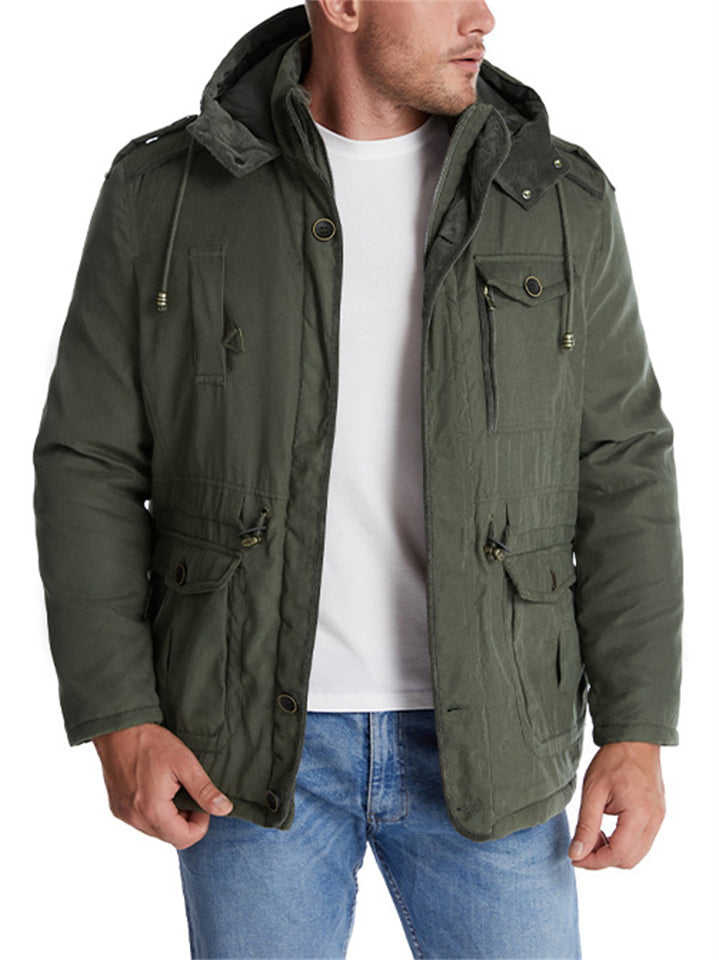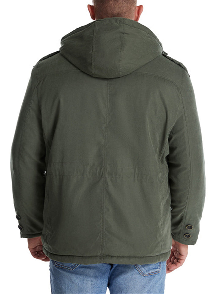 Men's Hooded Military Style Outdoor Thermal Lined Coat with Multiple Pockets