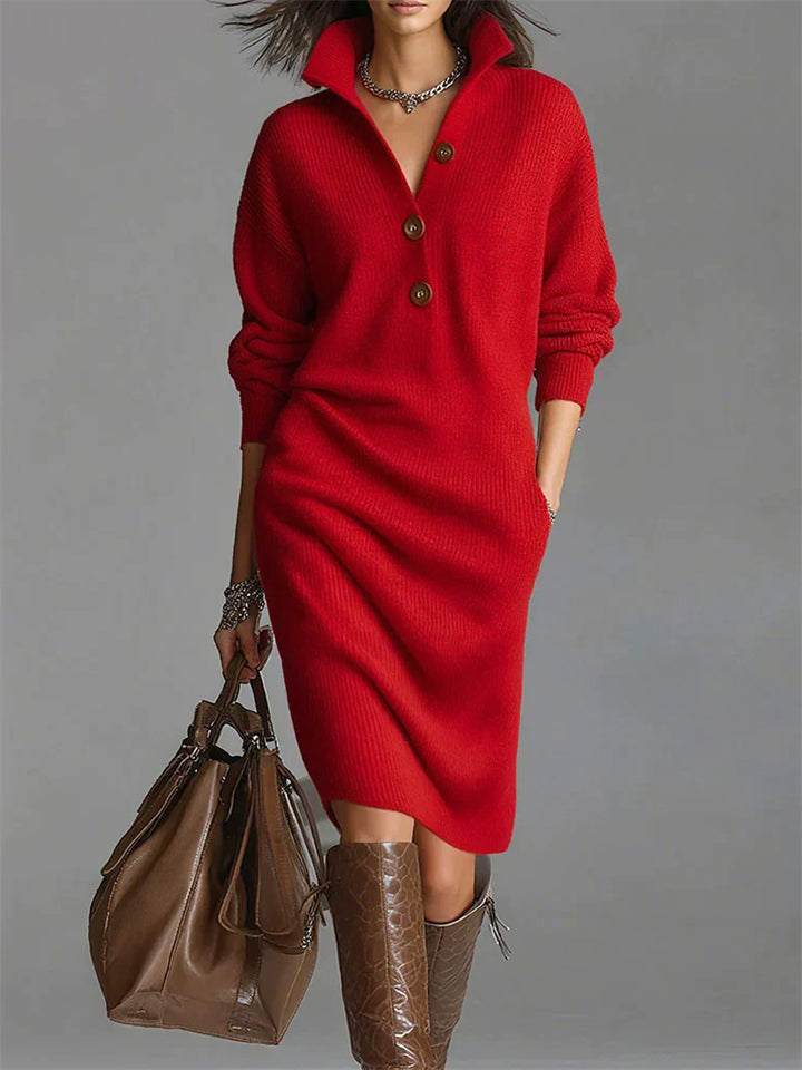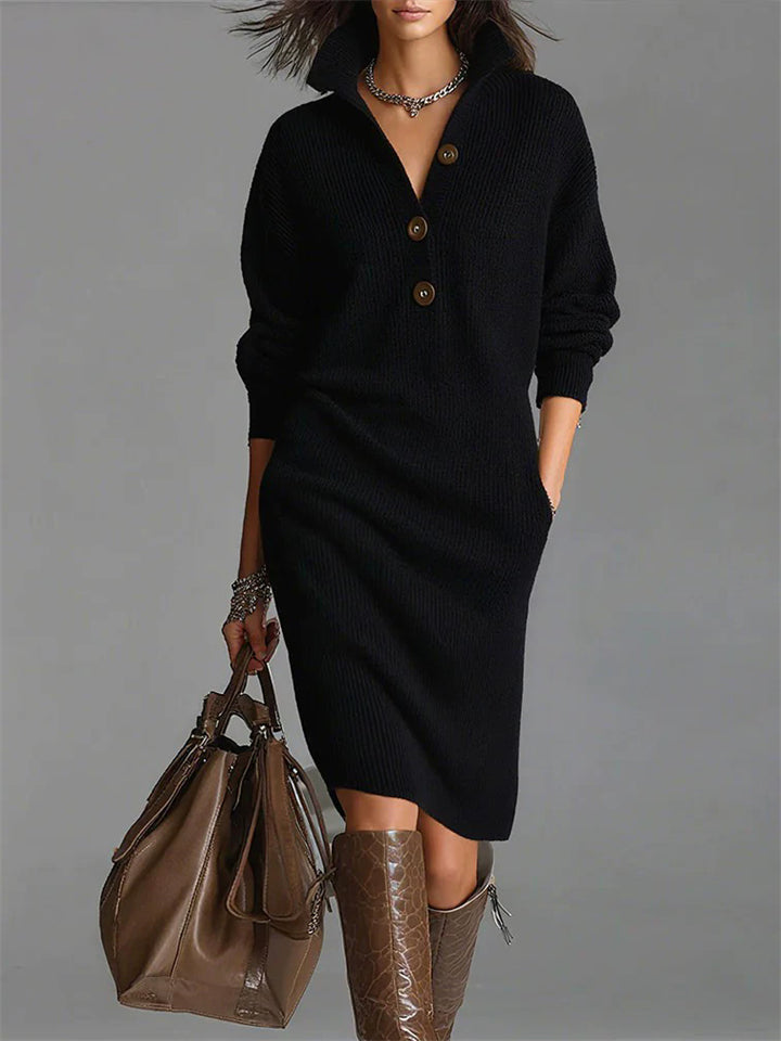 Women's Autumn Casual Buttons Pullover Loose Knit Dress