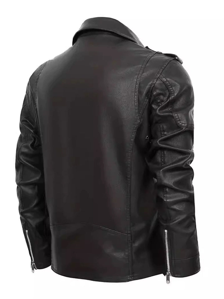 Men's Classic All Black Faux Leather Motorcycle Jackets