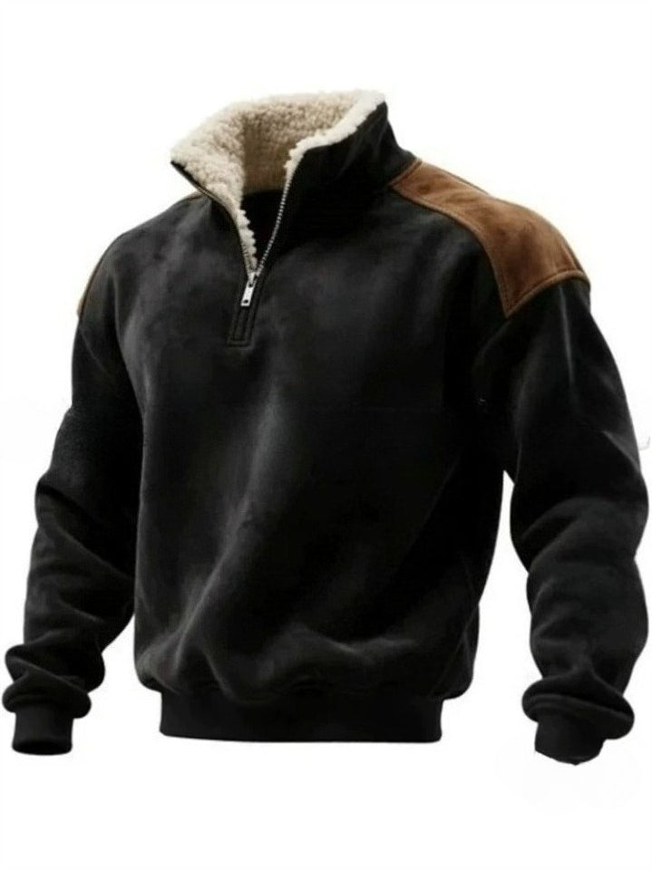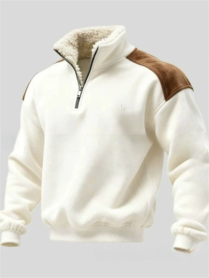 Men's Winter Patchwork Stand Collar Fleece Lined Zipper Sweatshirts
