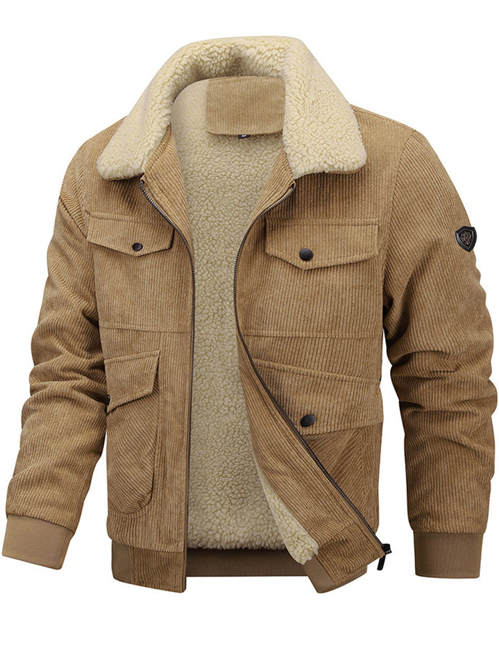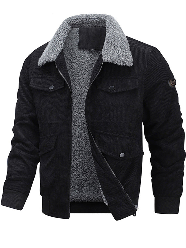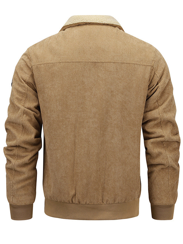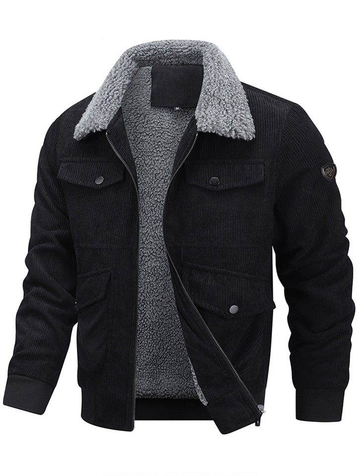 Plus Size Men's Corduroy Fleece Lined Warm Utility Coats with Pockets
