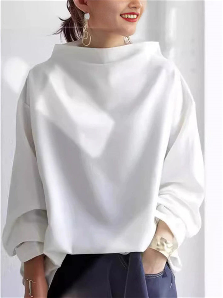 Women's Autumn Loose Semi-high Neck Long Sleeved Top