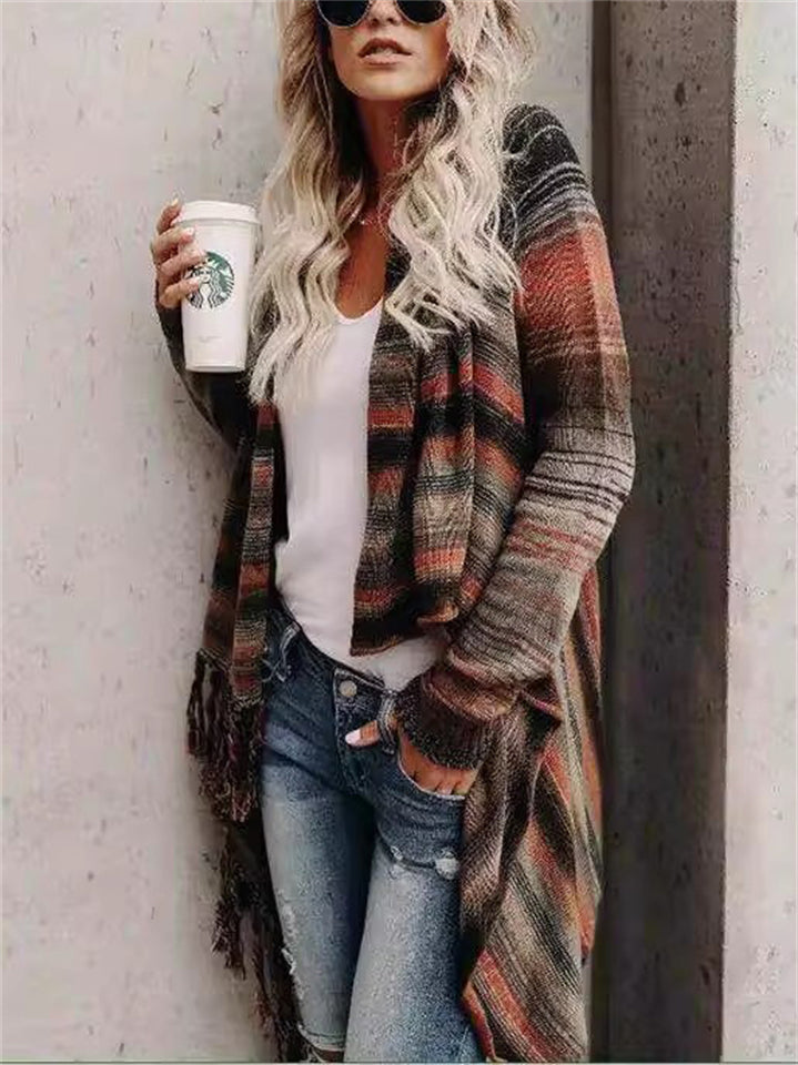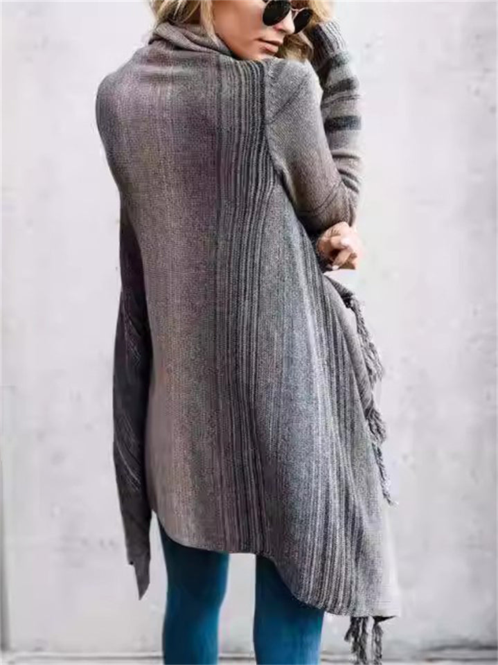 Women's Casual Contrast Color Striped Fringe Cardigan Sweaters