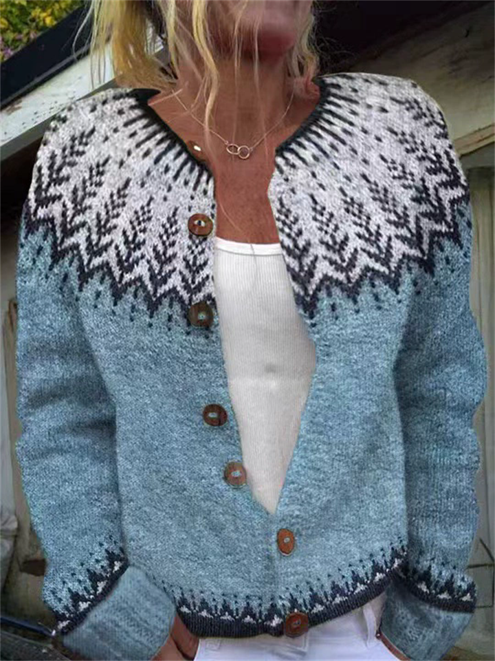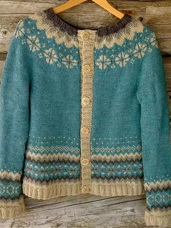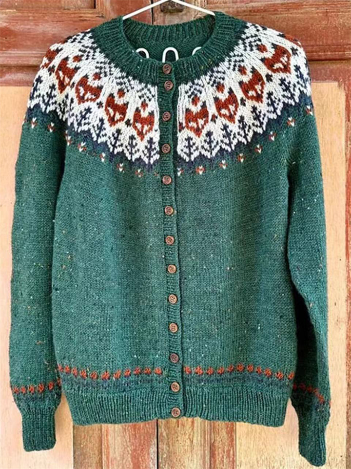 Women's Casual Ethnic Style Jacquard Button Up Cardigan Sweaters