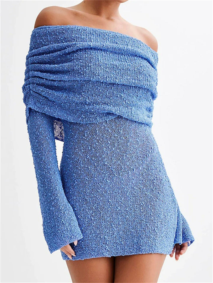 Women's Sexy Holiday Beach Style Hollow Sabrina Neckline MIni Dress – ModaSharp