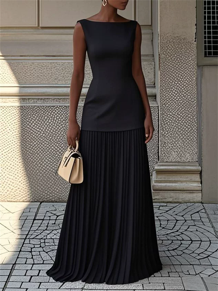 Women's Summer Elegant Sabrina Neck Sleeveless Top & Pleated Dress Set