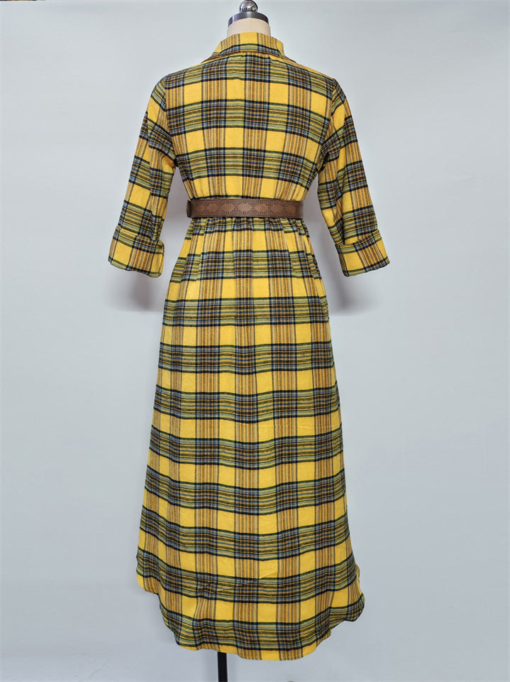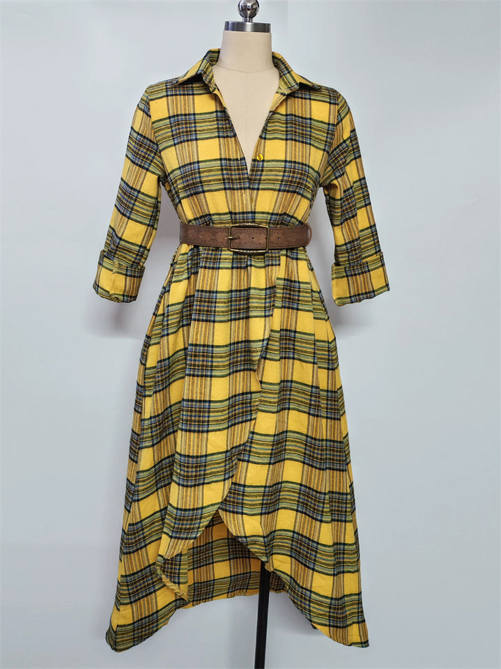 ‌Women‌'s Trendy Plaid Belted Asymmetric Maxi Shirt Dress – ModaSharp