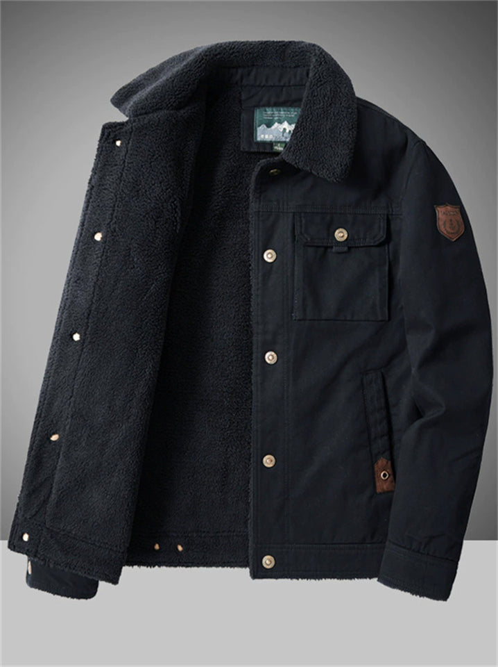Men’s Winter Cotton Lapel Thermal Fleece Lined Coat with Pockets