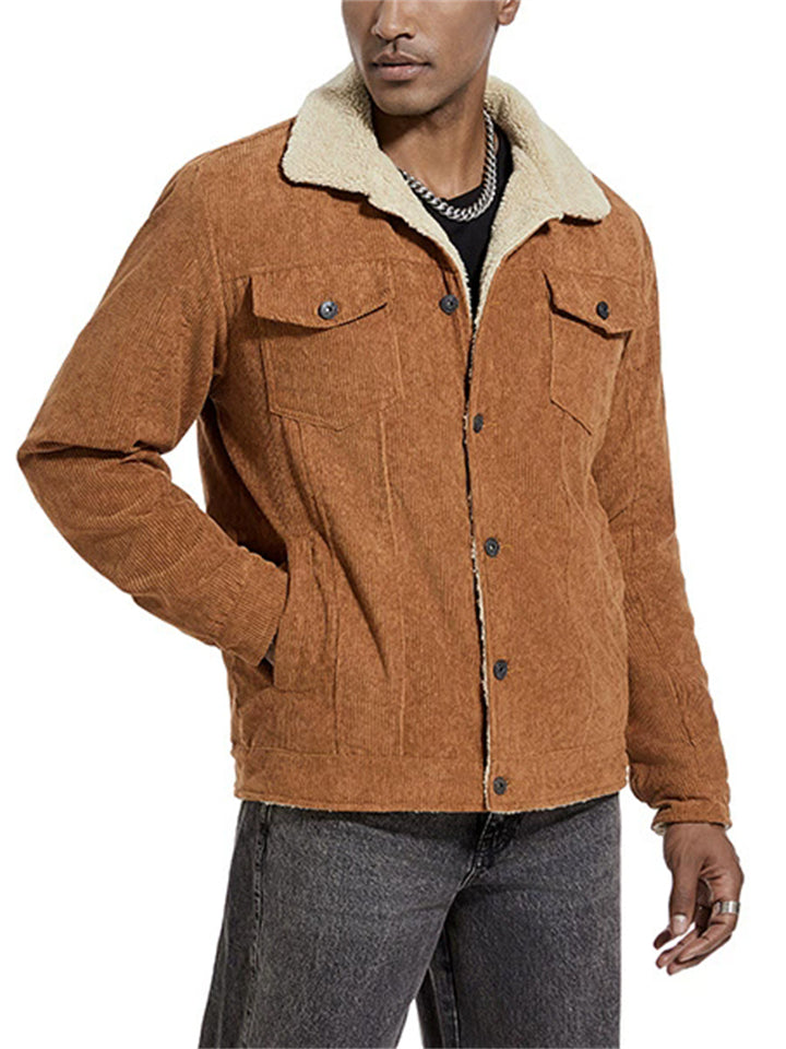 Men’s Winter Lapel Thick Corduroy Fleece Lined Coats