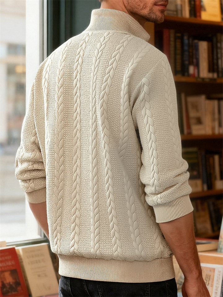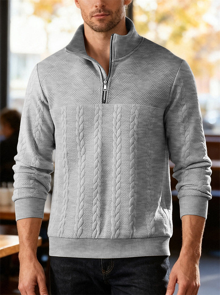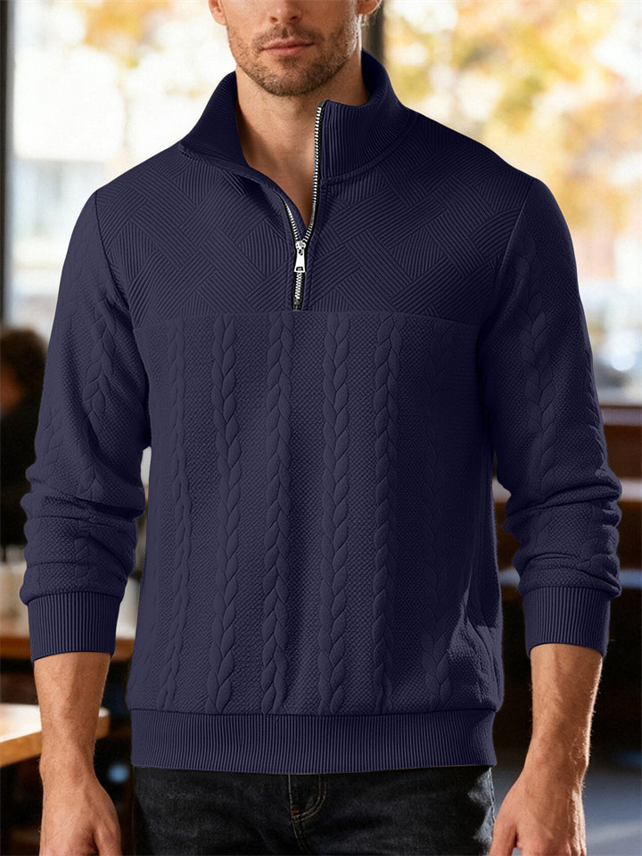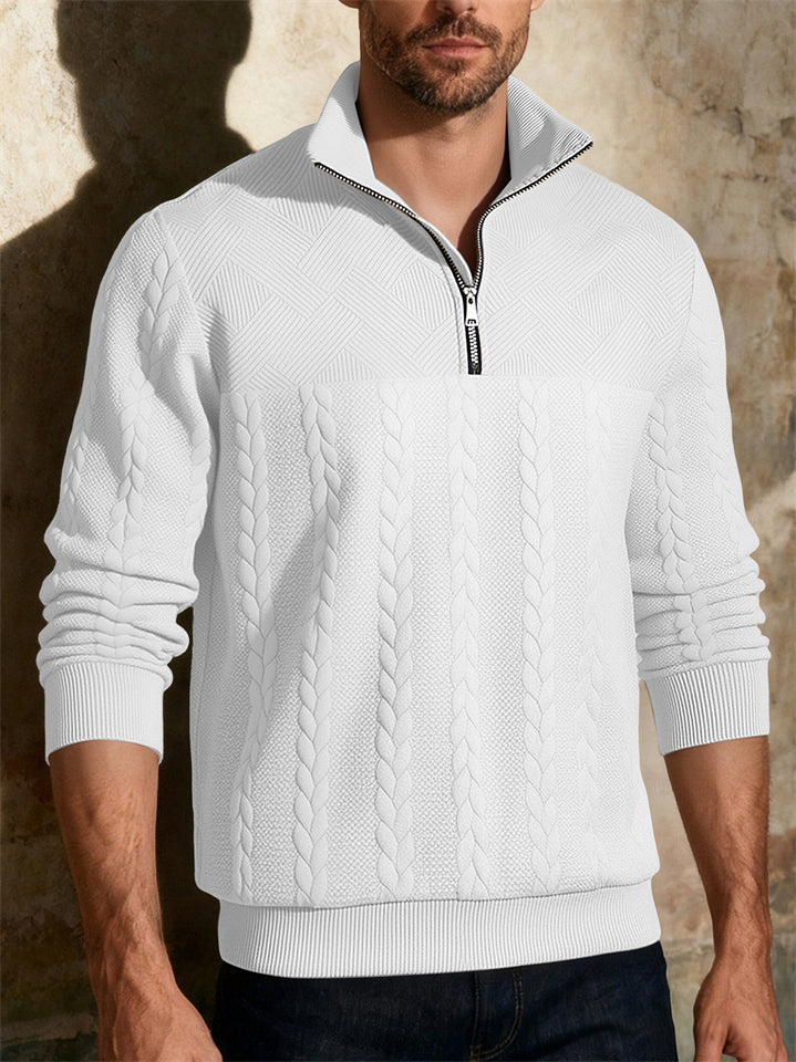 Men's Autumn American Style Twisted Jacquard Zip Up Pullover Sweatshirts