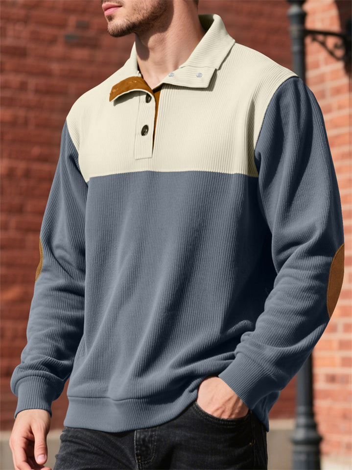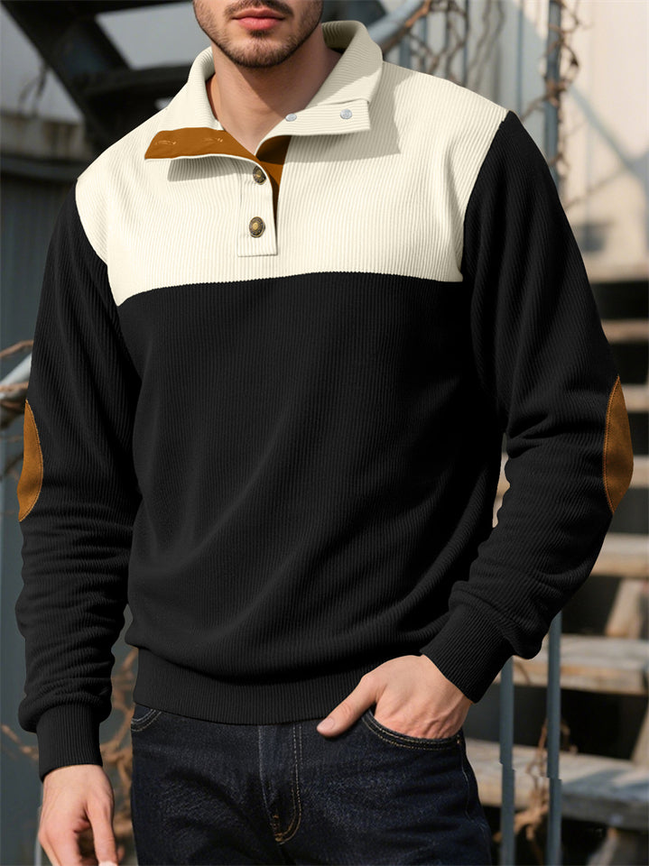 Men's Autumn Casual Contact Color Corduroy Quarter Button Pullover Sweatshirts