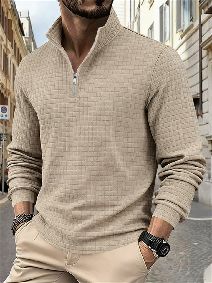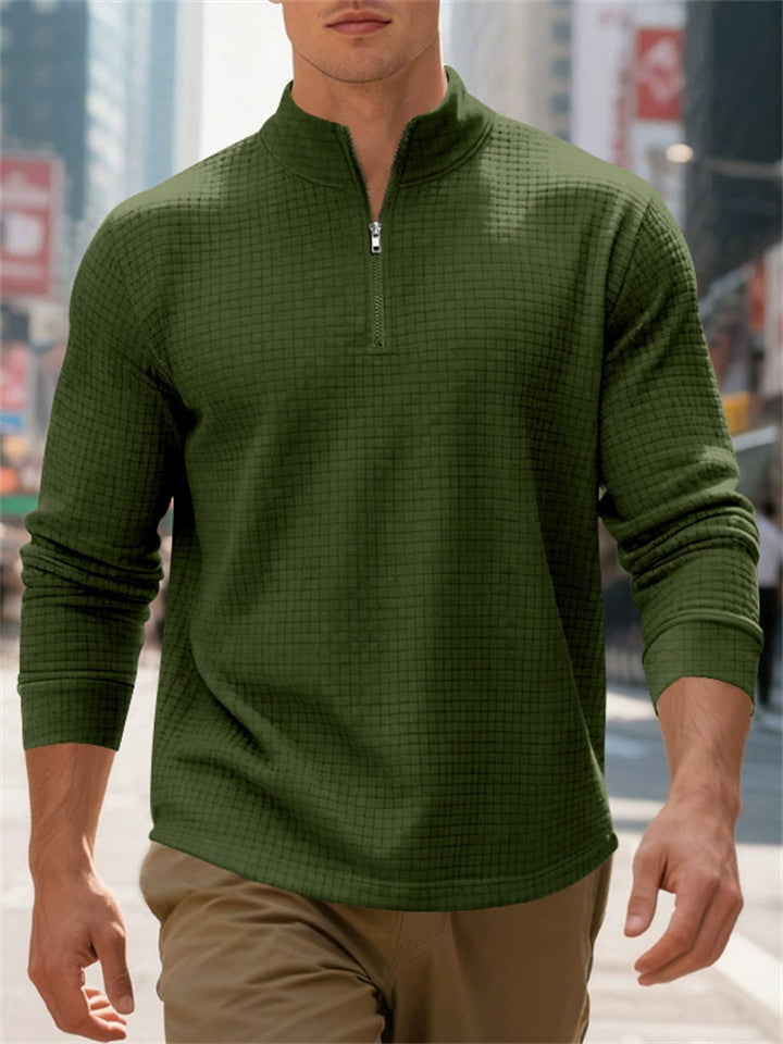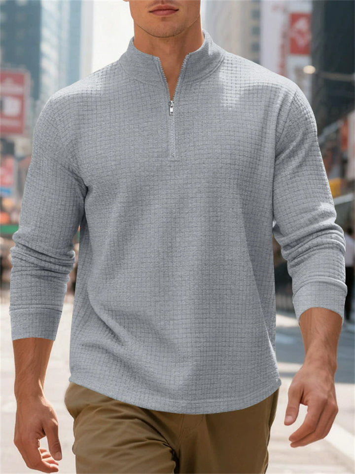 Men's Autumn Casual Long Sleeve Waffle Weave Zip Neck Top