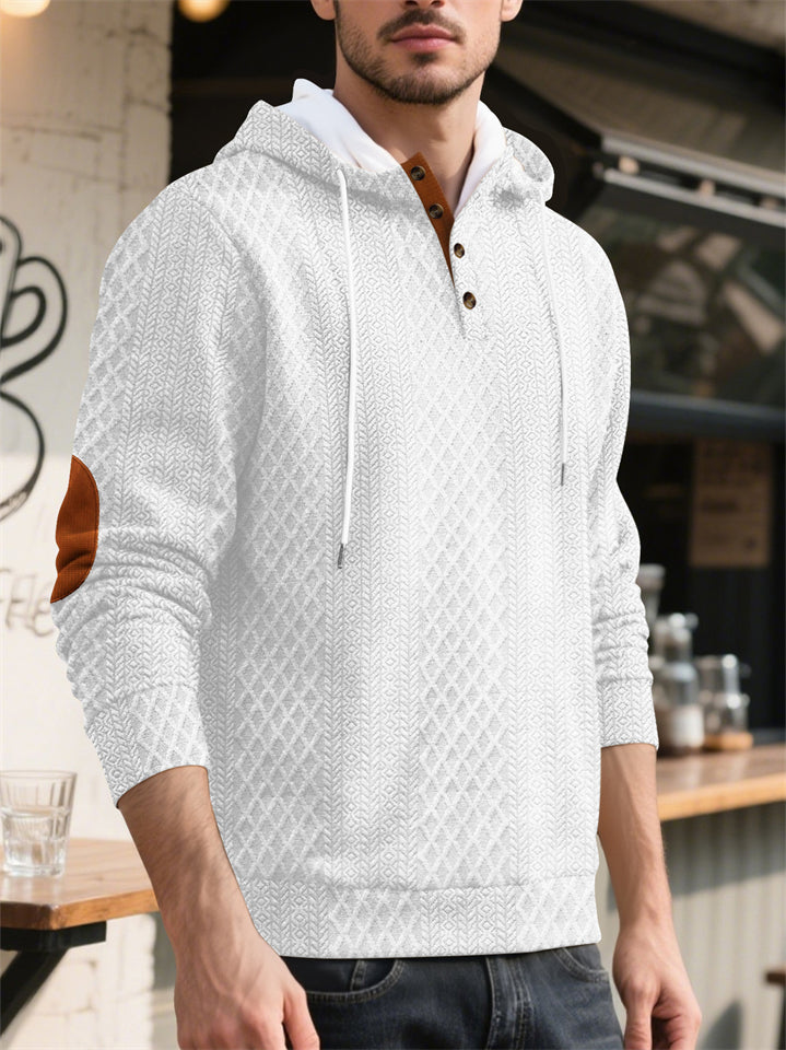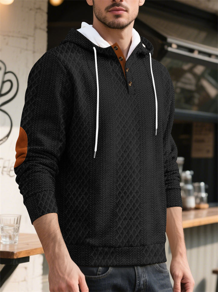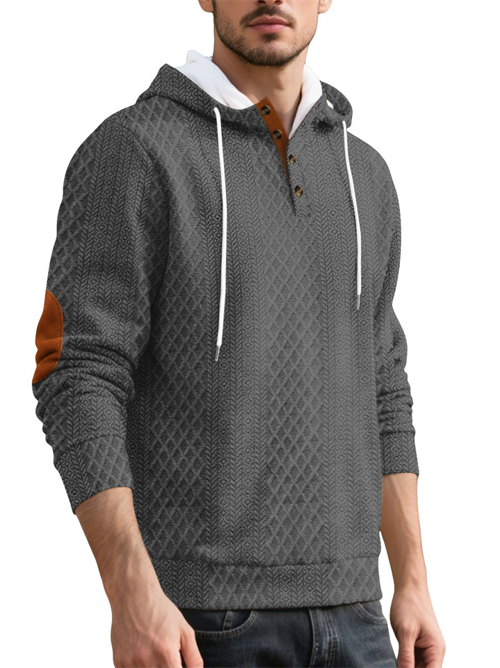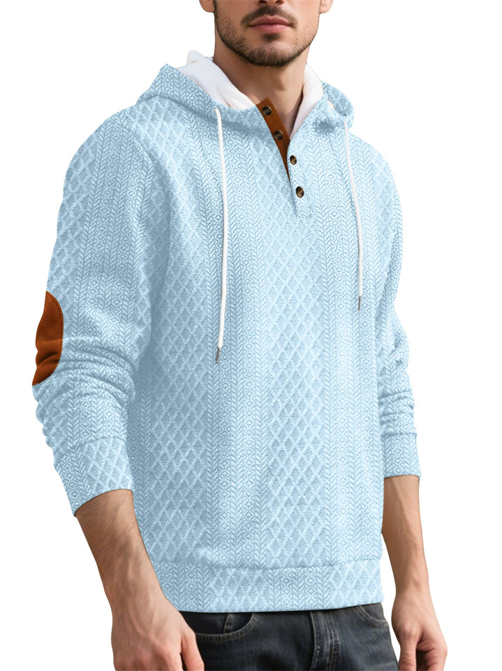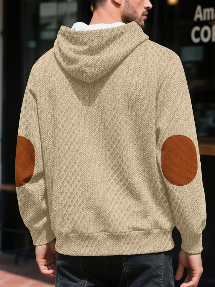Men's Autumn Casual Solid Color Rhombus Jacquard Pullover Hoodie