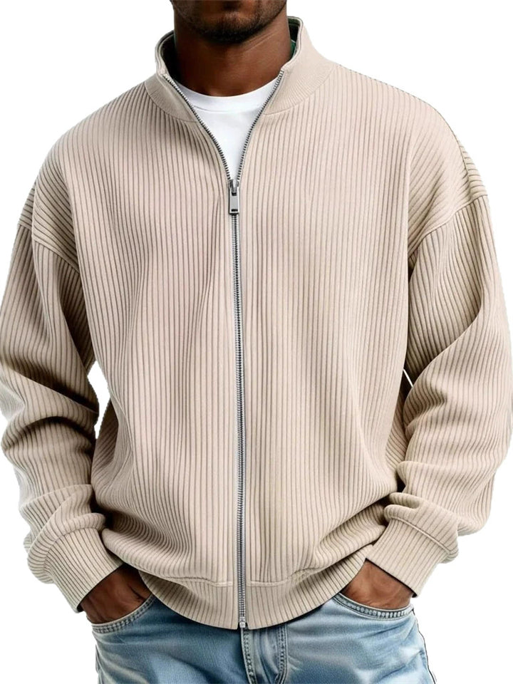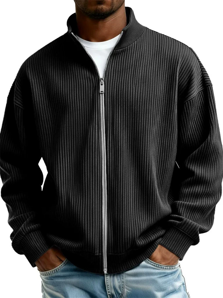 Men's Autumn Ribbed Zip-Up Cardigan Casual Loose Fit Outwear