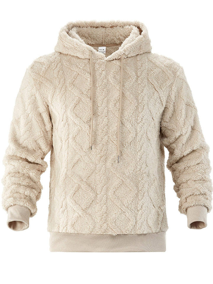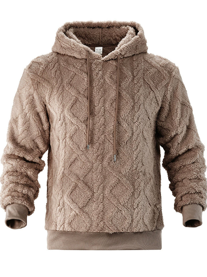 Men's Autumn Solid Color Rhombus Pattern Pullover Fleece Hoodie