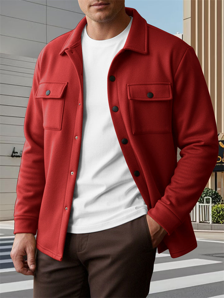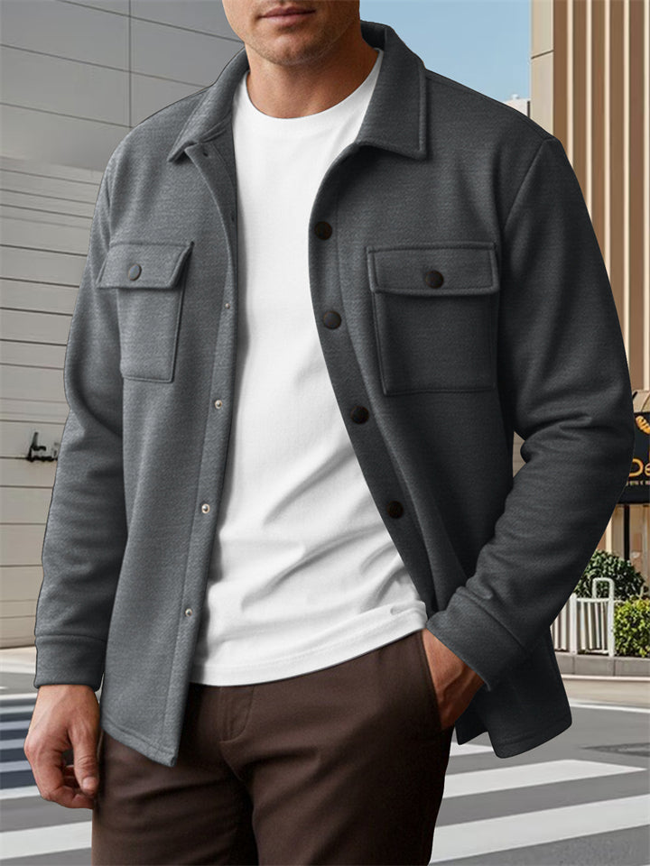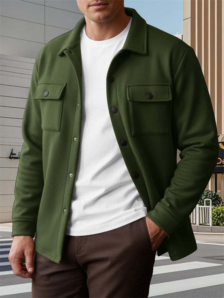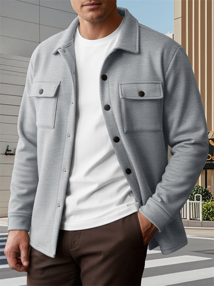 Men's Fleece-Linen Casual Button-Up Shirt Jacket for Spring Autumn